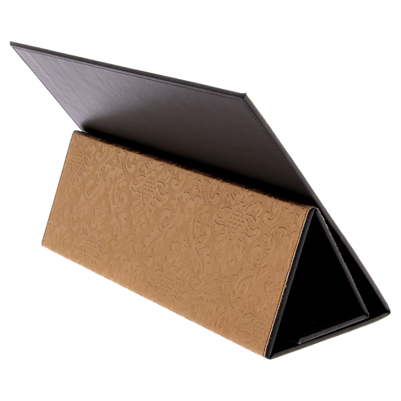 Stojalo za misal iz umetnega usnja z zlatim vzorcem in podstavkom iz plastike.
