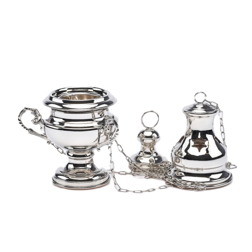 Kadilnica iz ponikljane medenine. Notranja posoda je odstranljiva.