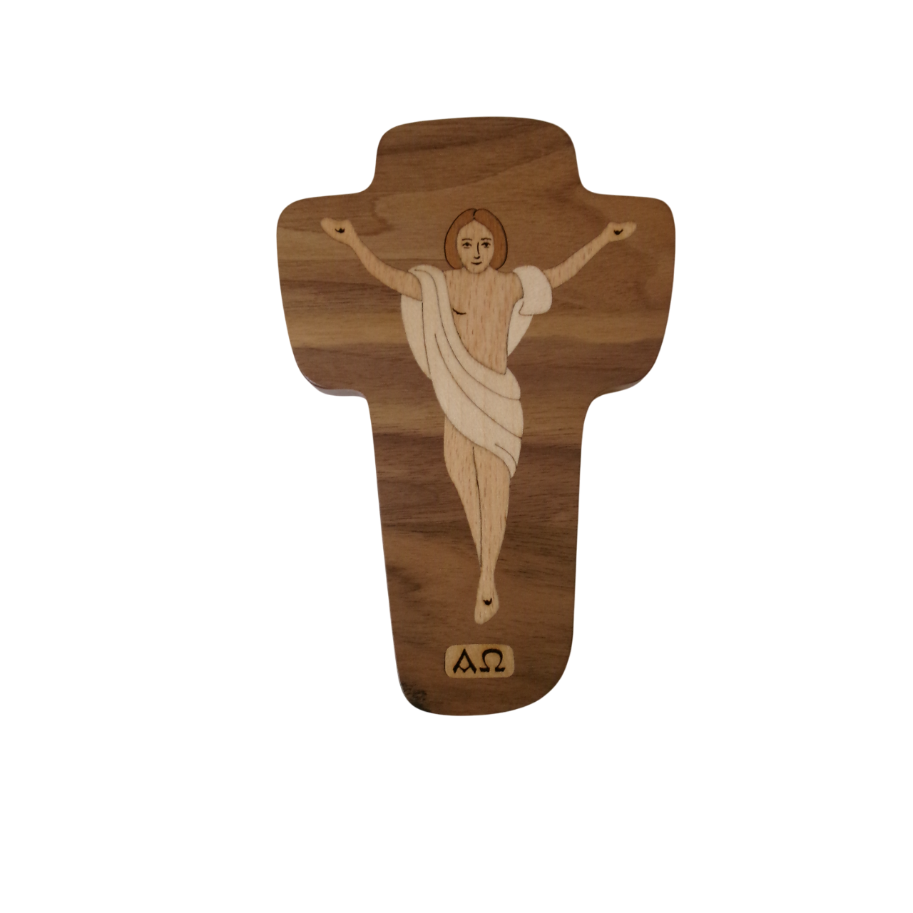 Stenski križ s podobo vstalega Jezusa v velikosti 13 cm.