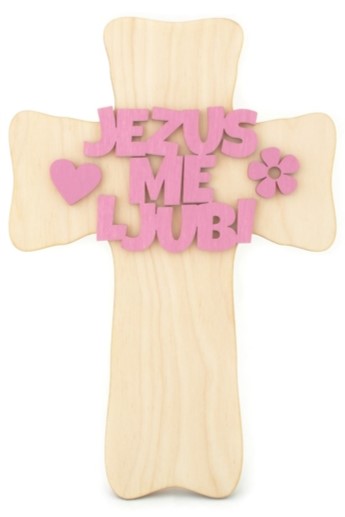 Križ s čudovitim sporočilom (Jezus me ljubi), oblikovan še posebej za otroške in mladinske sobe.
