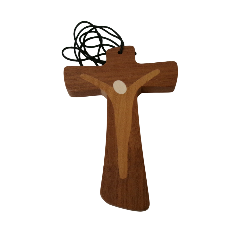 Lesen križ intarzija v velikosti 10 cm na vrvici.