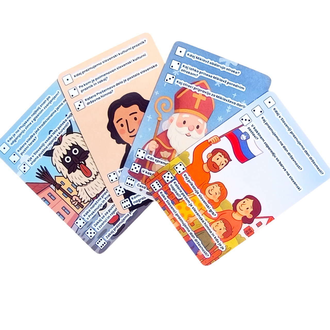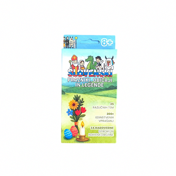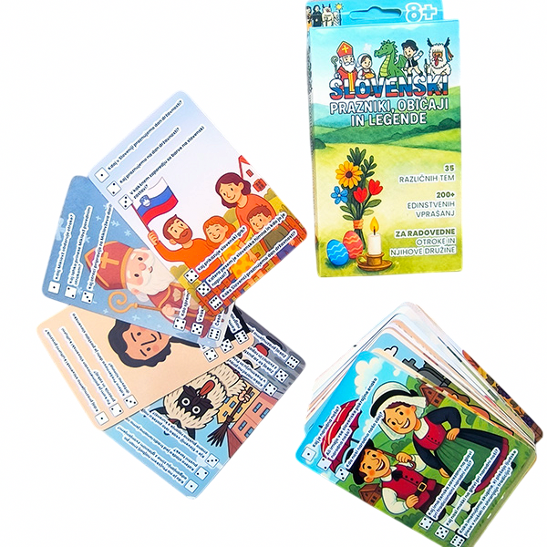 Izvirna družabna igra, ki združuje znanje, zabavo in kulturno dediščino. Namenjena je otrokom, družinam, učiteljem in katehetom, ki želijo na zanimiv način spoznavati slovenske praznike, svetnike in ljudske legende.