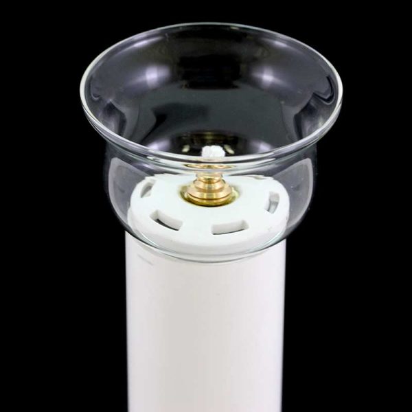 Steklen ščitnik plamena za svečo na tekoči vosek s premerom 4 cm. Višina ščitnika je 5 cm.