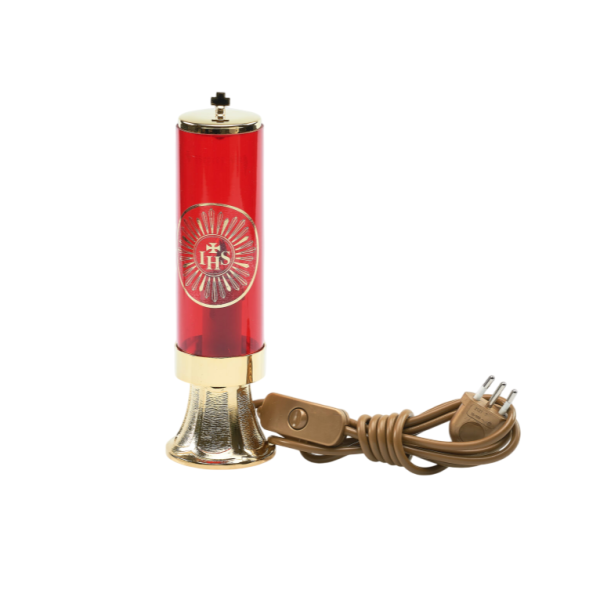Večna luč na elektriko s premerom 6 cm in višino 23 cm.